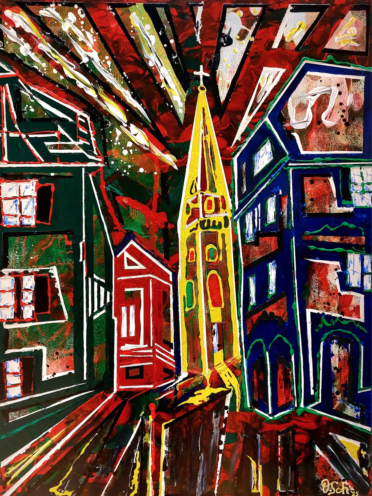 Die schön am Obertor gelegene Kulisse lebt in einem Strukturbildnis aus leuchtenden Pfählen, Balken und Flächen.